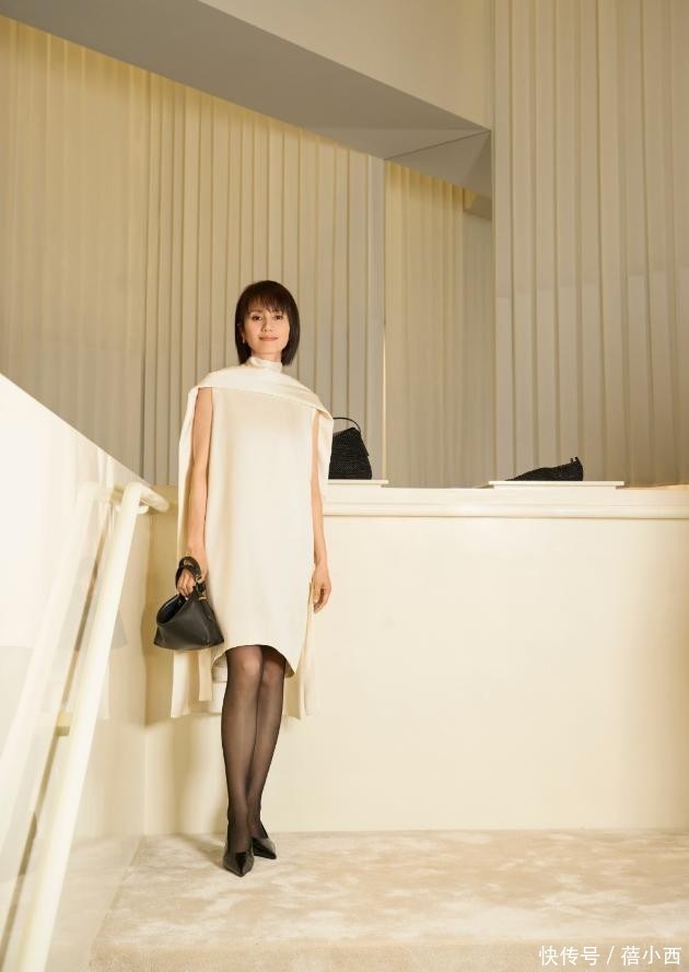 除了白裙外,还有黑色丝袜和高跟鞋,这身穿搭既散发出性感气息,又不失优雅感。