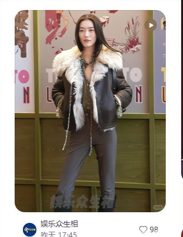 他穿了一件灰色风衣,虽然还是挺有气质的,但和旁边25岁的吴磊站在一起,差距一下子就出来了。